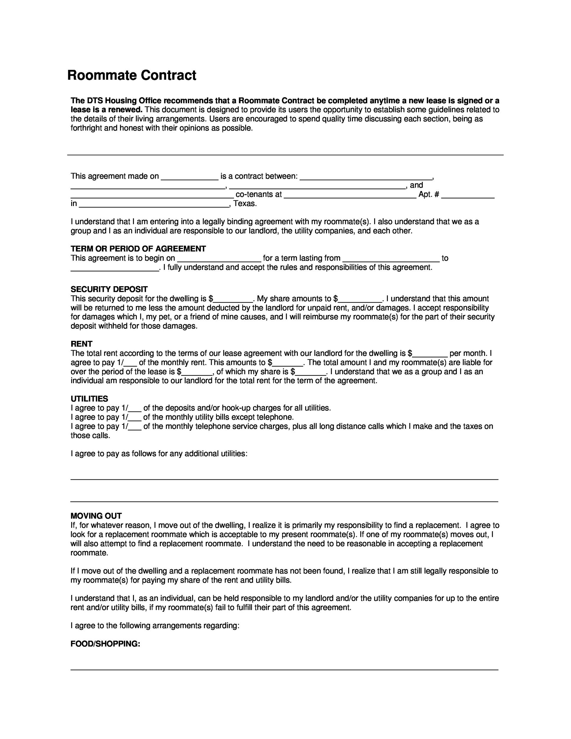 Free Printable Roommate Agreement Template