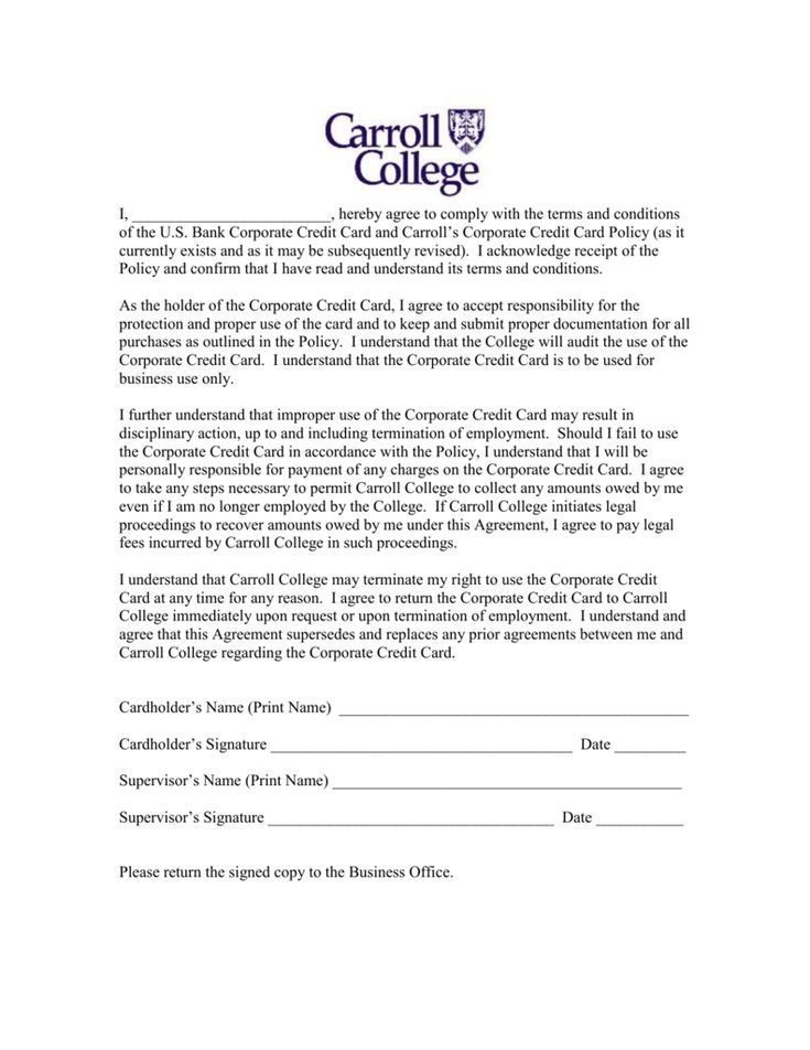 Printable Employee Credit Card Agreement Template